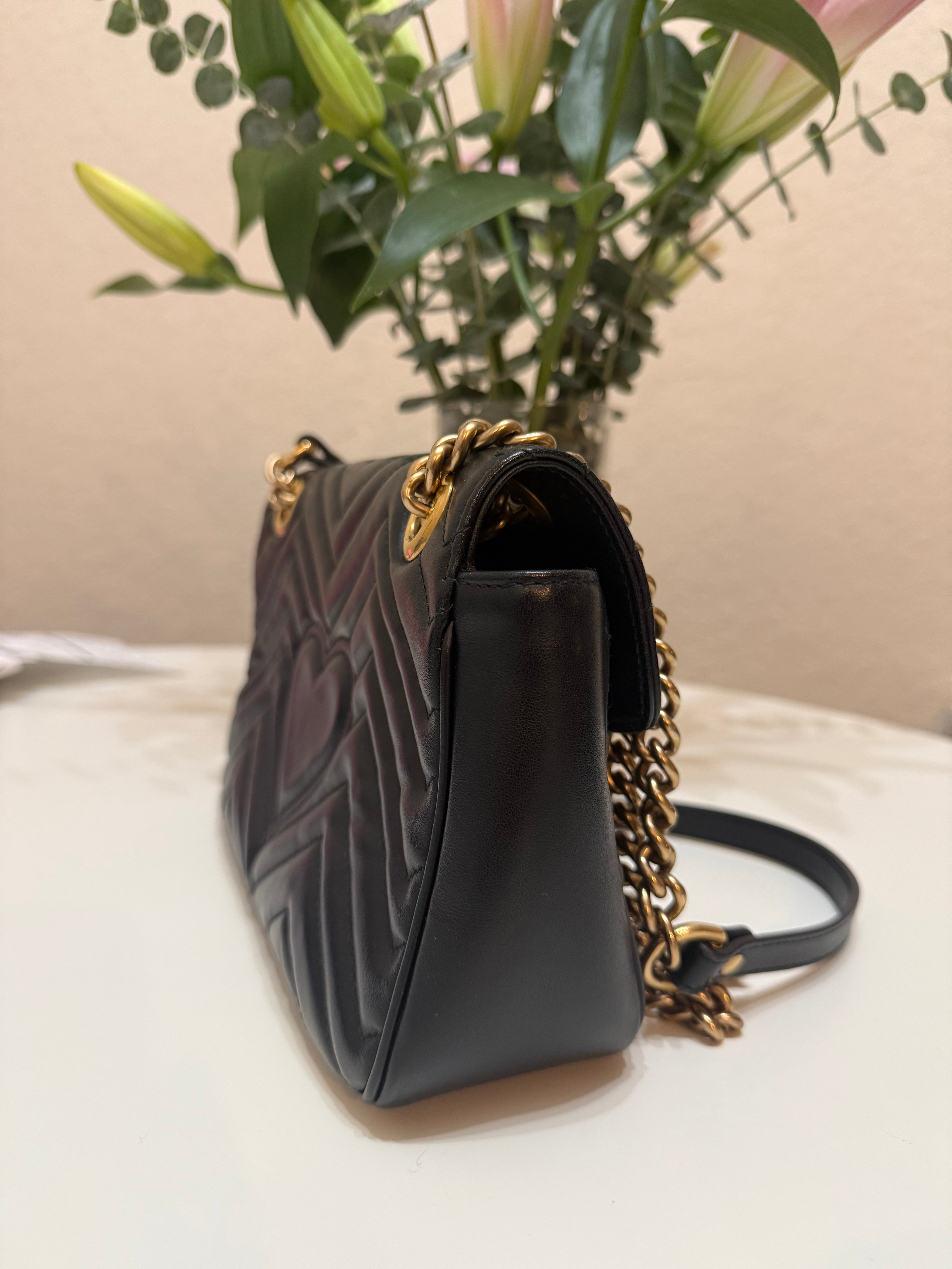 The Gucci Marmont Flap Leather bag features Made with high quality leather, this bag is both fashionable and durable. The perfect accessory for any occasion.